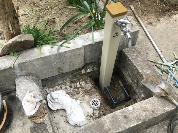 倉敷市連島町亀島新田のお客様から「屋外蛇口から水漏れしている!」とご相談いただきました。 水栓柱を交換させていただきます! 水栓柱周辺のモルタル補修も行い、作業完了です(^^)/ 岡山水道センターは屋内や屋外の蛇口の不良