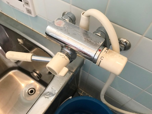 笠岡市富岡のお客様から「浴室の蛇口をひねると異音がする!」とご相談いただきました。 2バルブの混合水栓からリクシルのサーモスタッチ付きシャワー水栓に交換します(^O^) 作業中です。 スタイリッシュになりましたね! 岡山