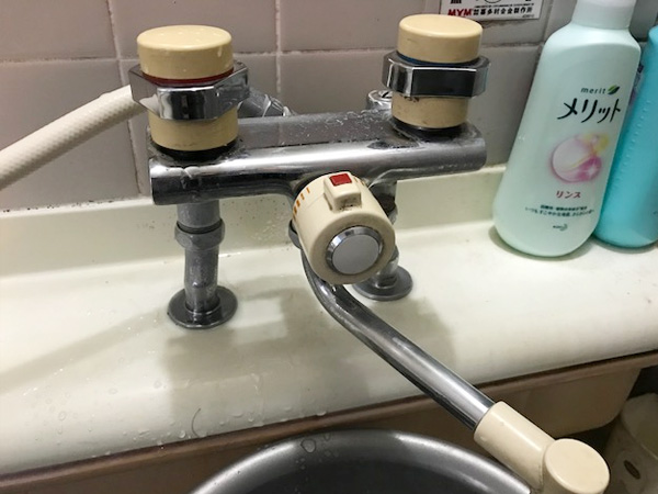 倉敷市広江のお客様から「浴室のシャワーから水漏れしている!」とご相談いただきました。 何年もご使用とのことで蛇口を交換することになりました。 TOTO製の台付2ハンドル混合水栓に交換して作業完了です(*゚▽゚*) 岡山水