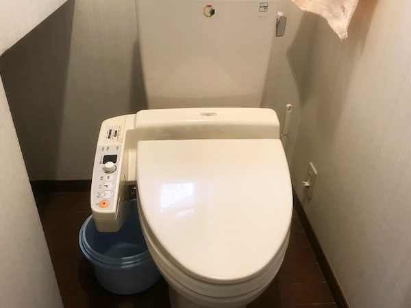 岡山市南区西高崎のお客様から「トイレのウォシュレット、浴室蛇口の切替部分と台所蛇口から水漏れする!」とご依頼をいただきました。 まずウォシュレットはTOTO製の新しいものに交換しました(*^▽^*) 【作業前】 【作業後