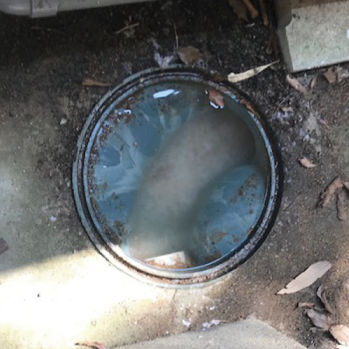 岡山市南区福富東のお客様から「グリストラップから水が溢れる」とのご依頼を頂きました。 先ずは現地へお伺いして状況の確認です。 排水詰まりで水が流れず溜まっている状態でした。 配水管の距離がトーラーを全部入れても桝に届かな