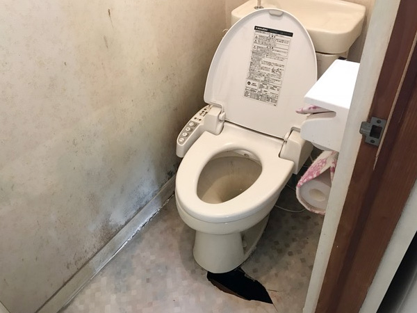 岡山市中区神下のお客様から 「トイレの水漏れで床がぬけた!」と ご依頼いただきました。 床の張替えとトイレ一式交換の リフォーム工事が完了しました(^^)/ 岡山水道センターは