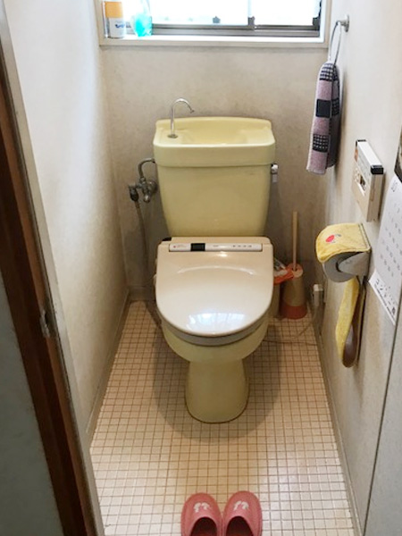 岡山市北区撫川のお宅へ 「トイレリフォーム工事」 のためお伺いしました。 トイレのタイル地を撤去して 新しいトイレを設置しました。 床材・壁材は掃除の