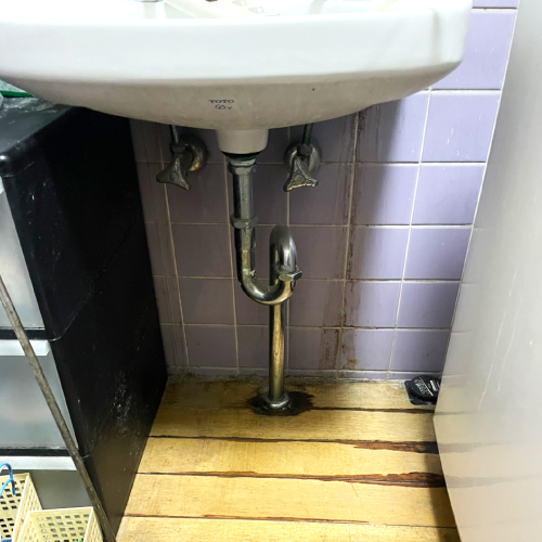 岡山市東区の施設の洗面台下から水が漏れているので見て欲しいとご連絡を頂きました。 お伺いしてみると、蛇口のシャワーホースからだだ漏れ状態でした(°_°)洗面台下もボロボロです…。 洗面台交換した方がいいよ
