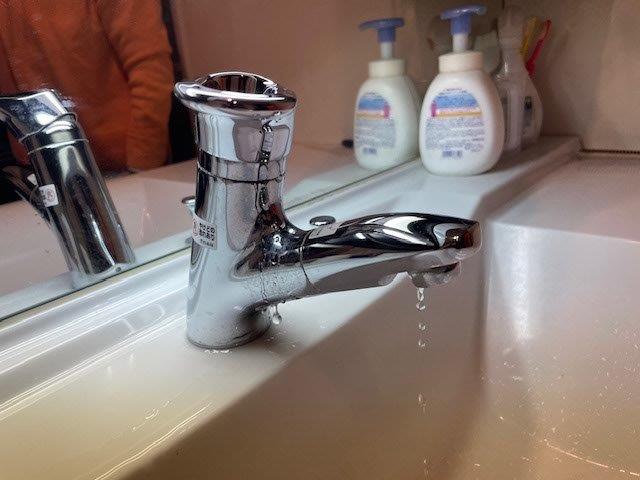岡山市北区のお客様から洗面所蛇口の水漏れ修理の件でご依頼を頂きました。 お伺いしてみると、ハンドルを閉めているのにポタポタ… 結構な量が漏れていますね。 修理の部品検索のために蛇口の品番を確認