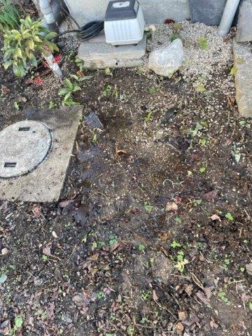 岡山市北区のお客様から「雨が降っていないのに庭に水たまりが出来るので調べて欲しい」と漏水調査のご依頼を頂きました。 お伺いして調査開始。 水たまりが出来る場所は排水マスのすぐ近くです。 ここに