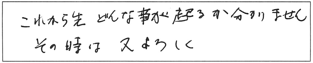水もれがはげしくなった時には、又、依頼するかもわかりませんので、よろしくお願いします。