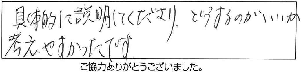 具体的に説明してくださり、どうするのがいいか考えやすかったです。