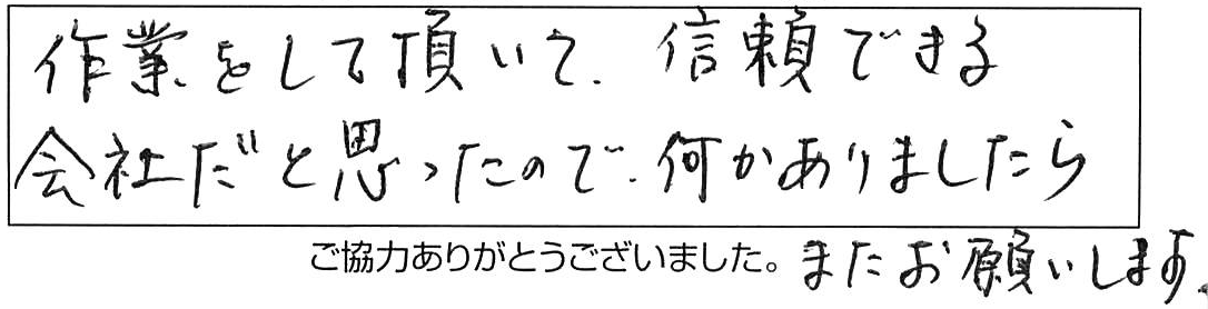 作業をして頂いて、信頼できる会社だと思ったので、何かありましたら、またお願いします。
