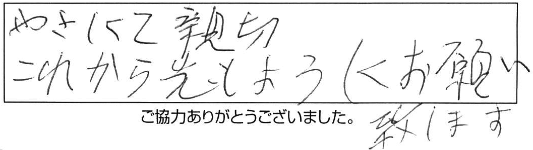 丁寧かつ、短時間で作業して頂き、大変嬉しく好感を持ちました。