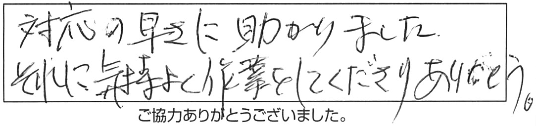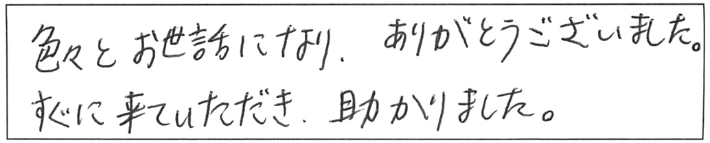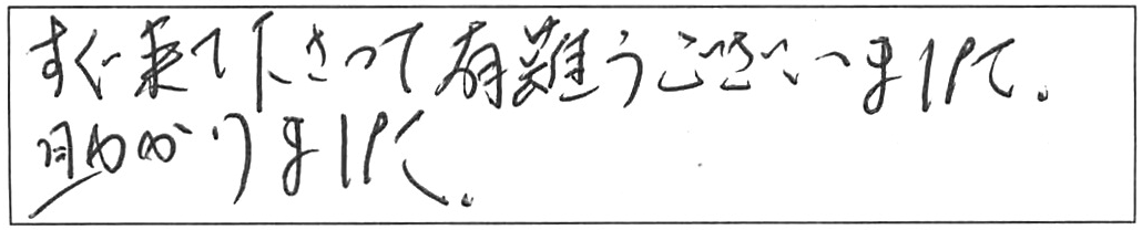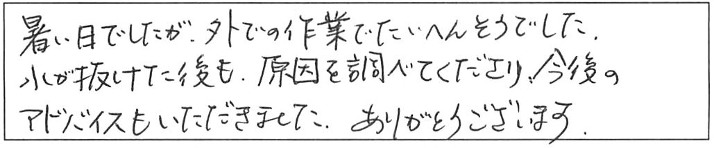 水が抜けた後も、原因を調べてくださり、今後のアドバイスもいただきました。