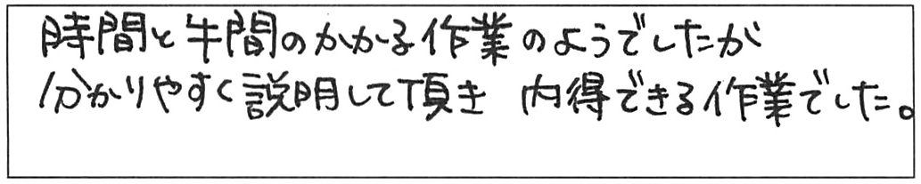 時間と手間のかかる作業のようでしたが、分かりやすく説明して頂き、納得できる作業でした。