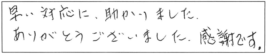 寒い中、夜にもかかわらず外で作業して頂き、すぐいつも通り使えるようになりました。