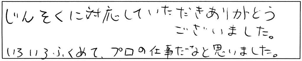 受付の方も作業員の方も大変親切だったので、又、何かあったらお願いしようと思ってます。