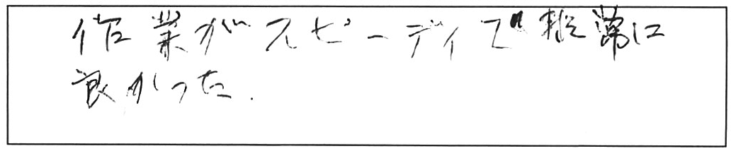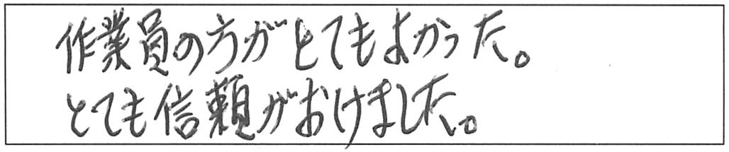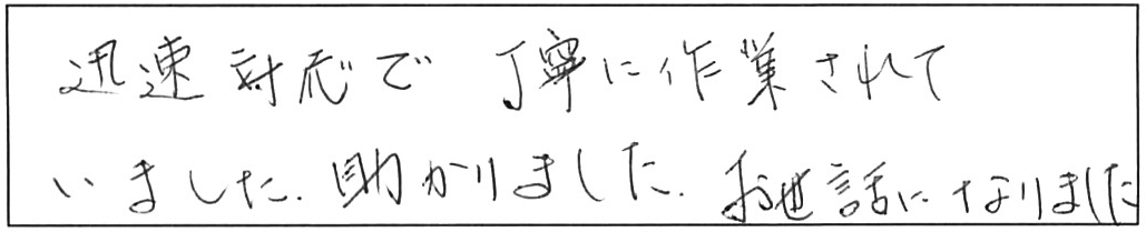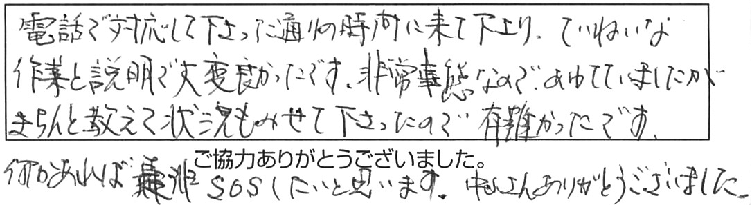 電話で対応して下さった通りの時間に来て下さり、ていねいな作業と説明で大変良かったです。