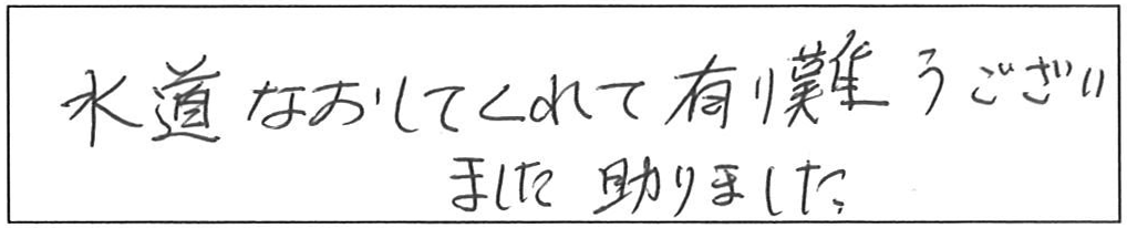 給水・給湯管交換工事/70代男性 2020-07-26 7年前に台所の蛇口をかえてもらった時とても良かったので、今回も大変お世話になりました。本当助かりました。ありがとうございました。 給水・給湯管交換工事/70代男性 続きはこちらから >>