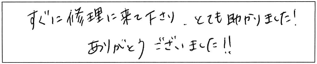 以前トイレの工事をしていただいた時から、ていねいに修理内容を説明してくれ、工事も価格も良心的でありがたかったです。