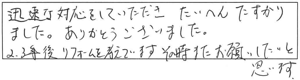 2~3年後、リフォームを考えています。その時、またお願いしたいと思います。