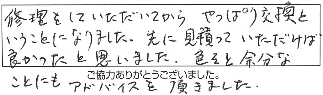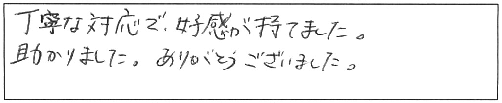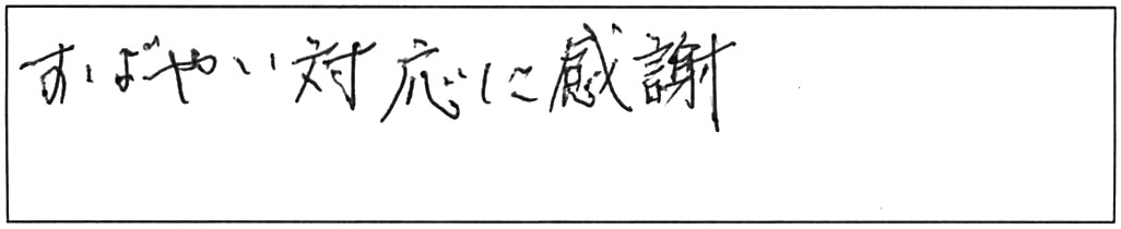 迅速な対応をしていただき、たいへんたすかりました。ありがとうございました。