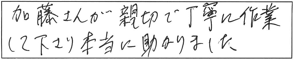 加藤さんが親切で丁寧に作業して下さり本当に助かりました