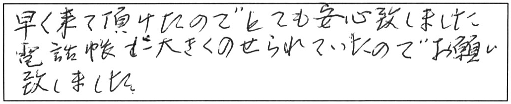作業員の方々の到着時刻や担当者のお名前も知らせて頂き、安心でした。